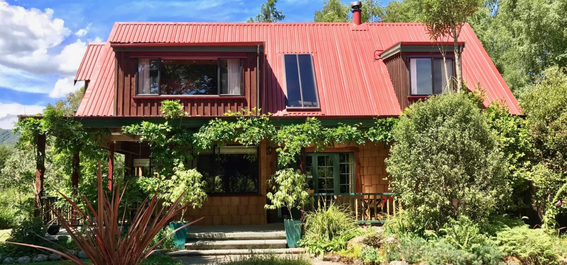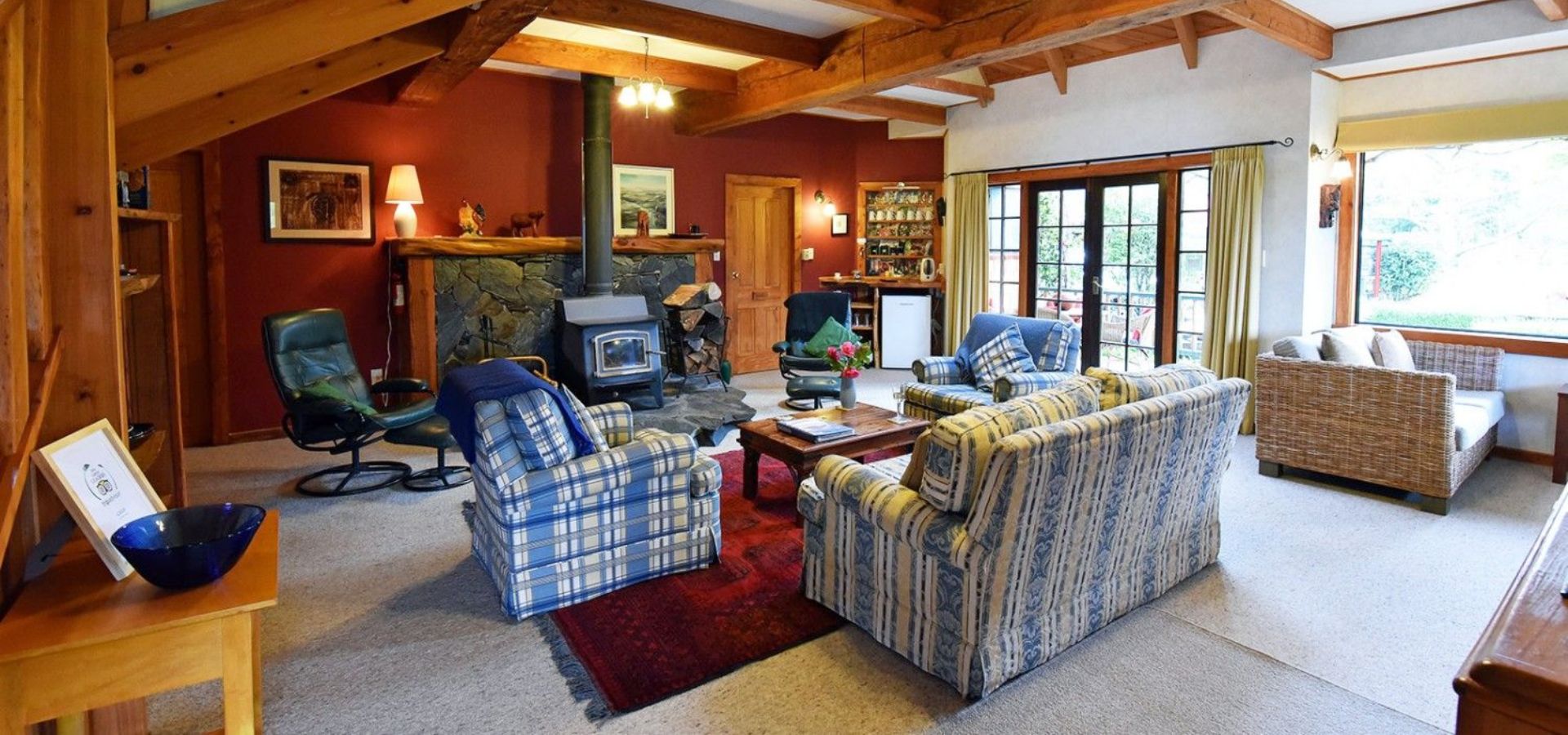 The Lodge offers quality B&B accommodation with character. Enjoy warm and relaxed hospitality, a comfortable bed and a hearty breakfast before exploring Murchison and the surrounding countryside. The warm and welcoming timber Lodge is set on four quiet acres of mature wooded gardens and paddocks. Surrounded by mountains and bordering the Buller River it feels miles from anywhere but a 5-10 minutes walk will have you to "down town" Murchison with its pubs, cafés and eclectic shops. Stop for a couple of nights – there's plenty to do and you can return at the end of the day to friendly faces and a cold beer on the veranda or a wine in front of the log fire.